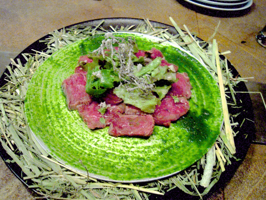 お皿が緑色なのではなく、この緑はいろいろなフレッシュハーブをすりつぶしたソースです。ハーブの香りが強すぎなくて瑞々しく美味しいです。