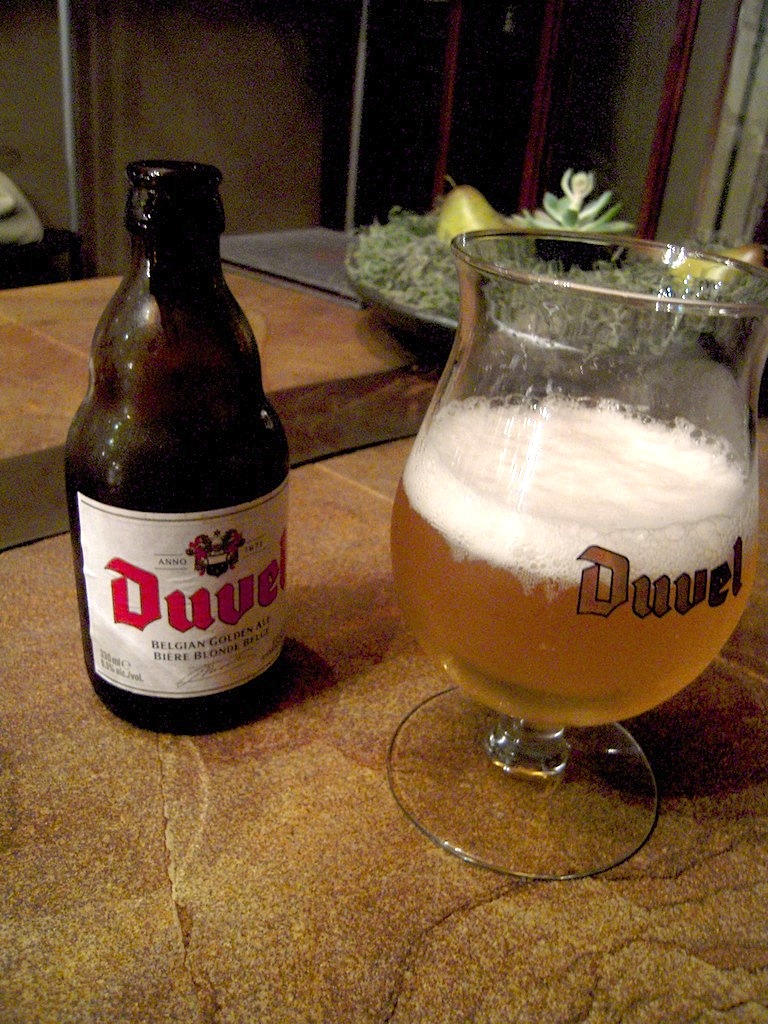 いっしょに飲み物も到着。わたしはベルギービールの"Duvel"(デュヴェル)。アルコール度数が高く、泡が消えないとメニューの説明書きにありました。
