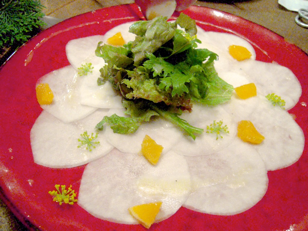 ここらでサラダも食べましょう。カブと柑橘のサラダ。