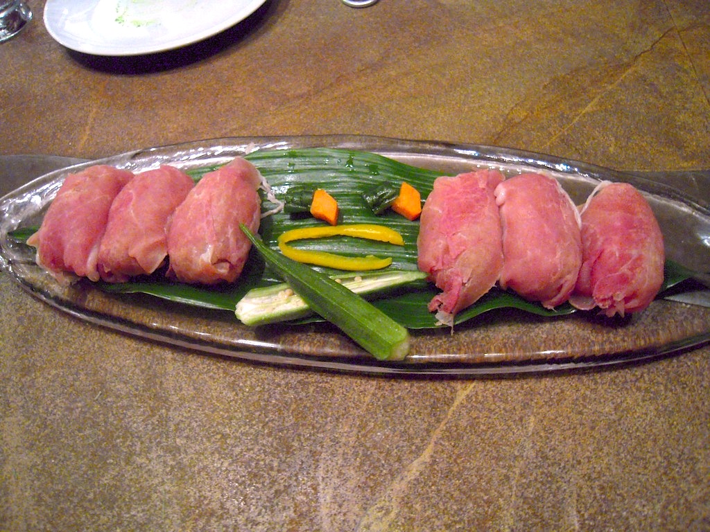 生ハムの握りを頼みました。添えられている野菜は自家製のおつけもの。漬物といってもフレッシュな感じ。