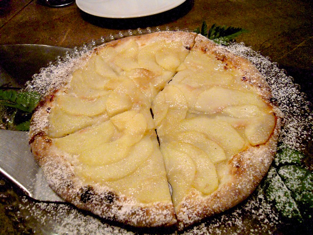 デザートは、フルーツのピザにしてみました。今日のは桃。