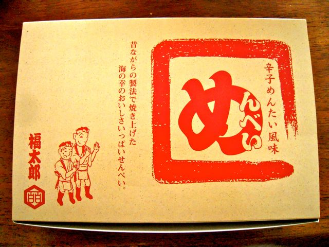 辛子明太子でおなじみの『福太郎』がこんなお菓子も出していたのですね。 めんたいこのおせんべい、『めんべい』。 うすくて、パリっとして、ピリッとする。 2枚入りの小袋、一袋ではおさまらず、もう一袋、あと一袋。と、ついつい手が伸びました。