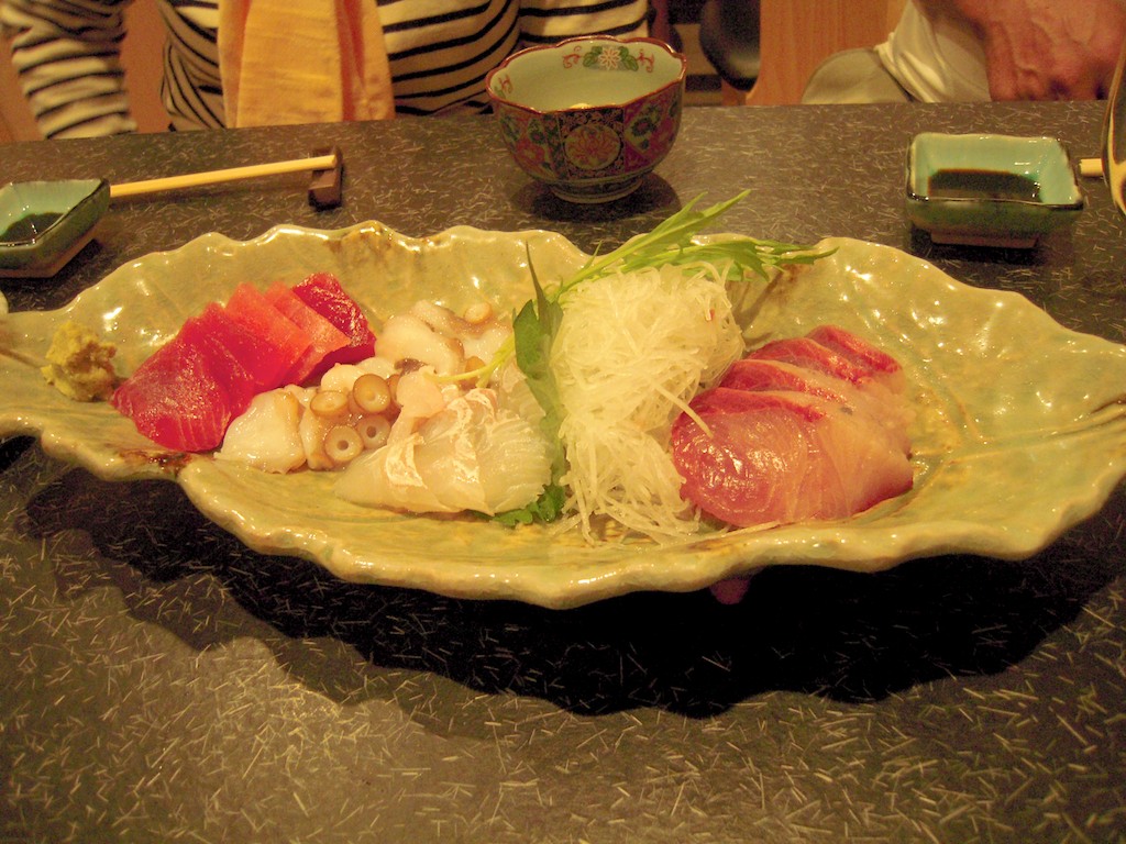 お刺身の盛り合わせから始まって、わたしの大好きなだし巻き卵も頼んでいただいて、こごみやとうもろこしのてんぷら、イカや海老のてんぷら、鶏の唐揚げ、山芋とアボカドとマグロのタルタル、シメには鴨とポルチーニ茸のフェットチーネまで。