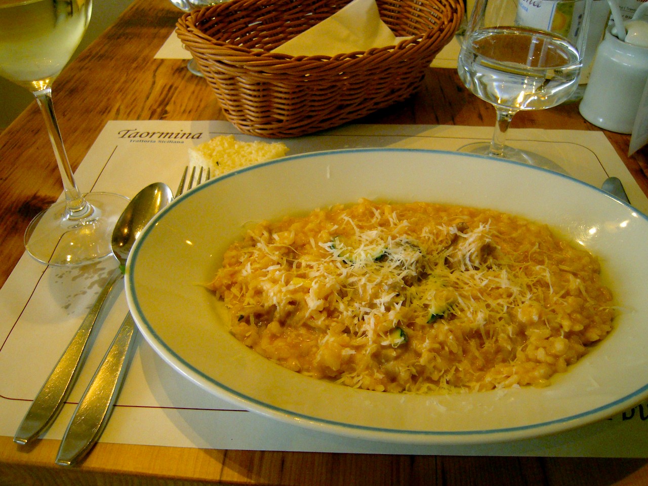 すりおろしてかかっているカチョリコッタというチーズがおいしく、レモンの風味のクリームソースがさわやかな、お米のプチプチした美味しいリゾットでした。