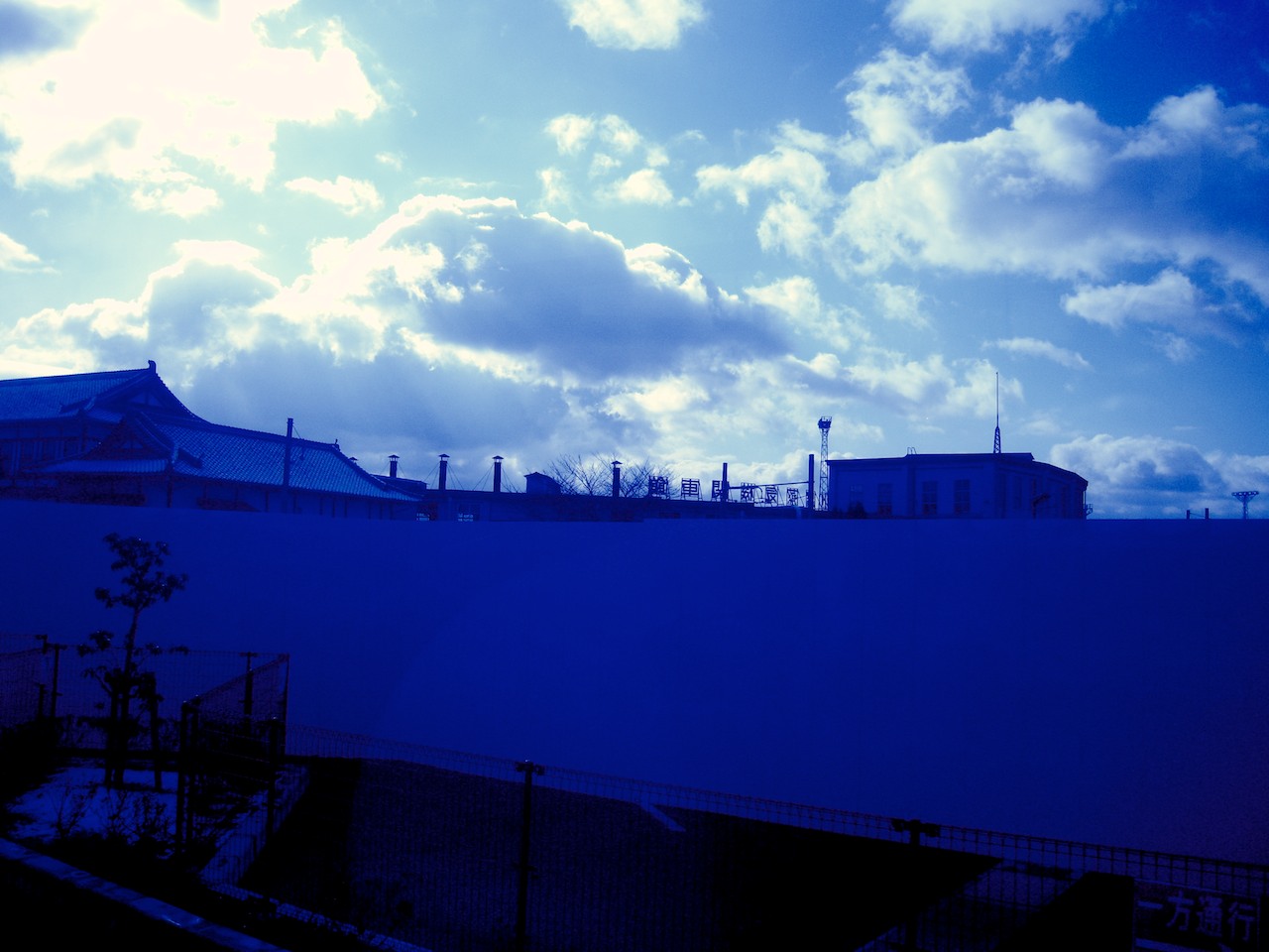 梅小路公園の西に広がっていた駐車場と子供の遊び場とちんちん電車のレールは、もう取り壊されてしまったのか。大きな塀で囲まれてしまって、中の様子は見えません。