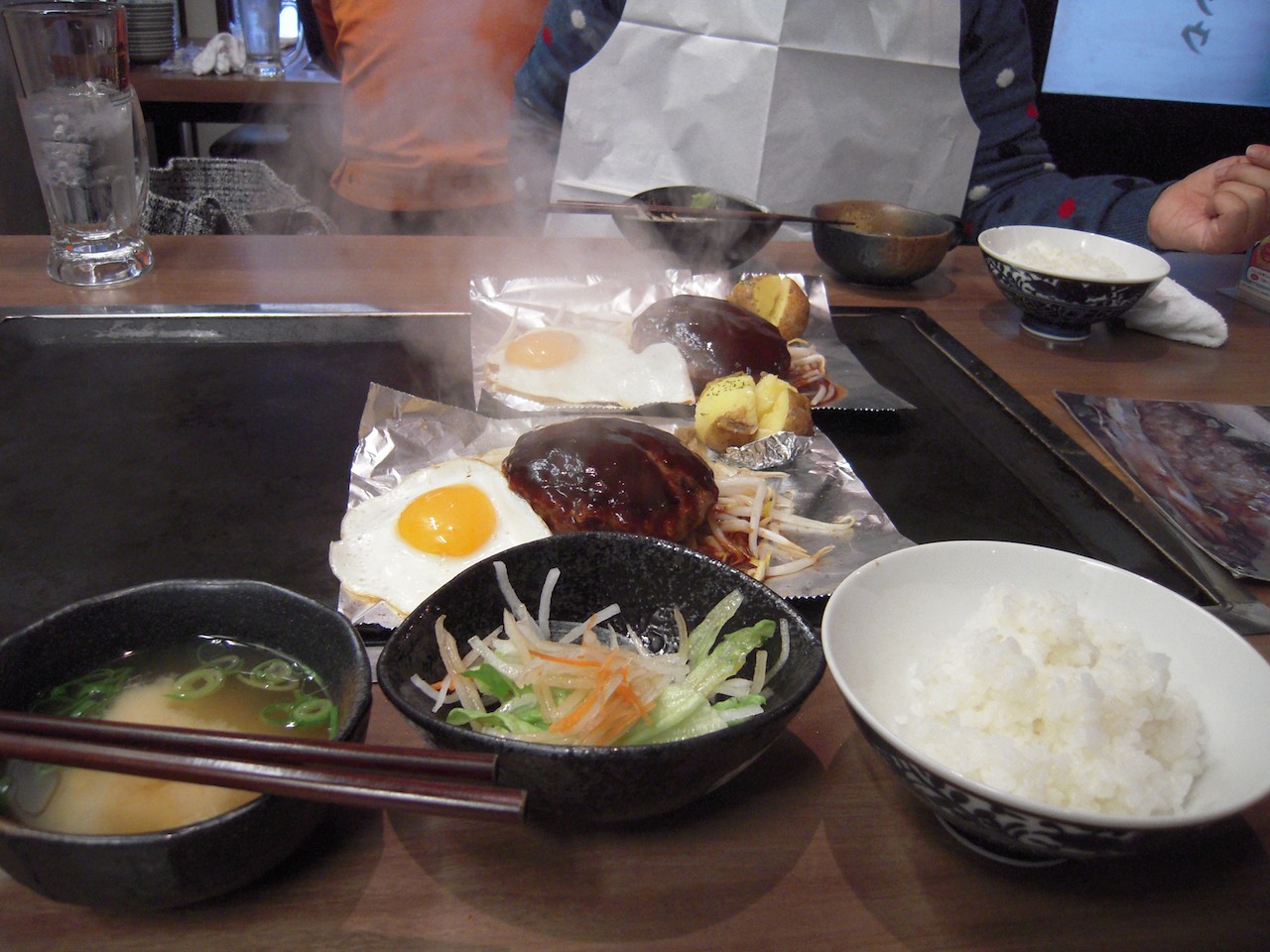 いくつかあるうどん屋さんにも心惹かれましたが、結局ハンバーグ定食の文字につられて鉄板焼きのお店へGO!