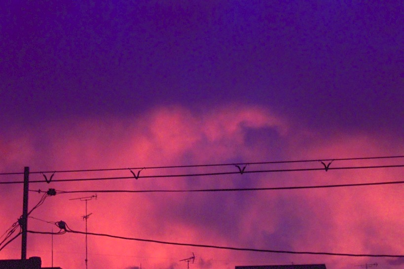 火事っ!? ではありません。夕焼けです。すごく赤くてきれい。