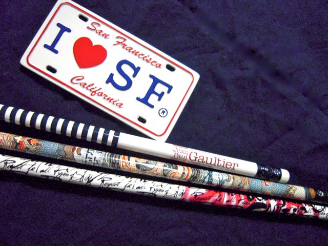 ジャン・ポール・ゴルティエの衣裳展のグッズ売り場で見つけたという鉛筆と、サンフランシスコのマグネット。