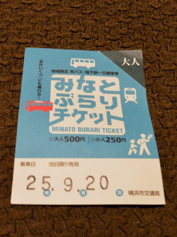 わたしは初日の昼に新横浜へ着くと桜木町行きのJRに乗り換えて、桜木町で荷物をロッカーに放り込み、地下鉄ブルーラインの改札横で『みなとぶらりチケット』を購入。