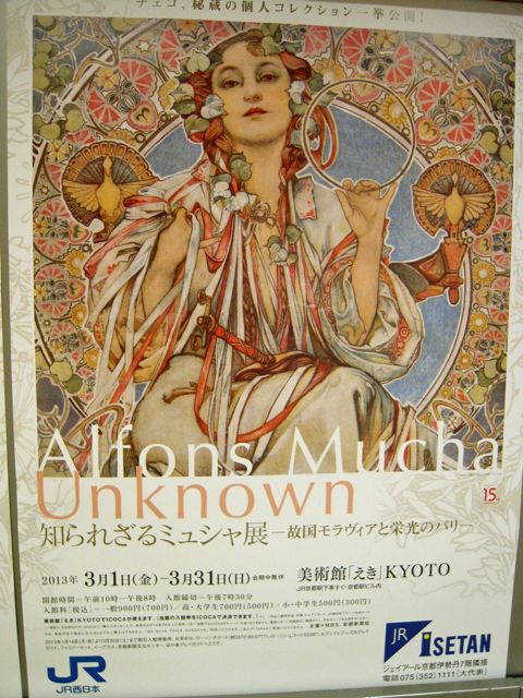 ジェイアール京都伊勢丹7階の美術館「えき」KYOTOで3月1日から『知られざるミュシャ展−故国モラヴィアと栄光のパリー』が始まりました。