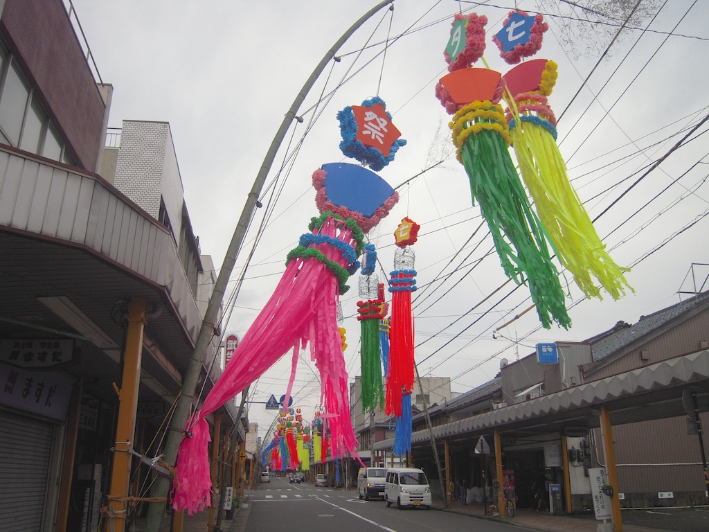 繁華街と思われるところには翌日の七夕祭りの飾りが連なっていました。が、歩いている人がいない。