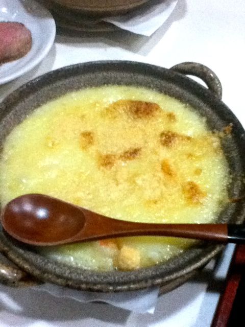 ご飯とお漬物がぴったりの、ちょっと和風な洋食、という感じ。途中で土鍋にご飯を入れる、それは当然のなりゆき。