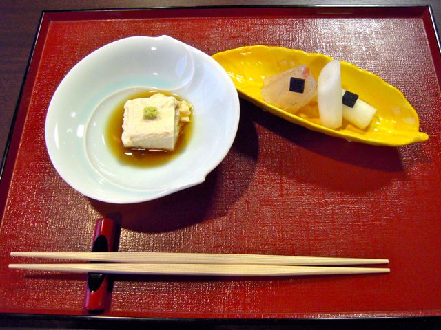 先付としては『鯛のこぶ締め 蕪 水前寺海苔』『湯葉豆腐』。
