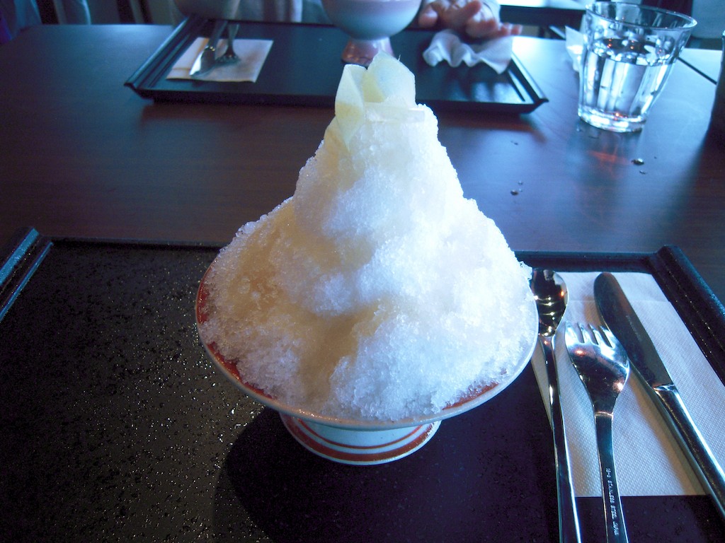 全体にこじんまりとした盛り方ではあるのですが、一気に食べても頭の両側がキーンとすることが起こりえない、そういう氷。