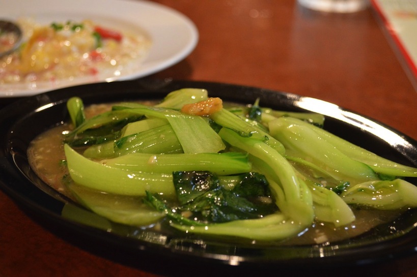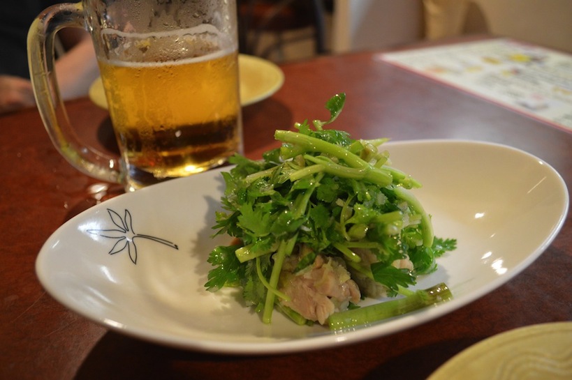 フレッシュなシャキシャキシャンツァイが山盛り。葱のソースとからまって、それを蒸し鶏とともに口に入れると、『ふふふ』と笑い出しそうなほどの美味しさ。