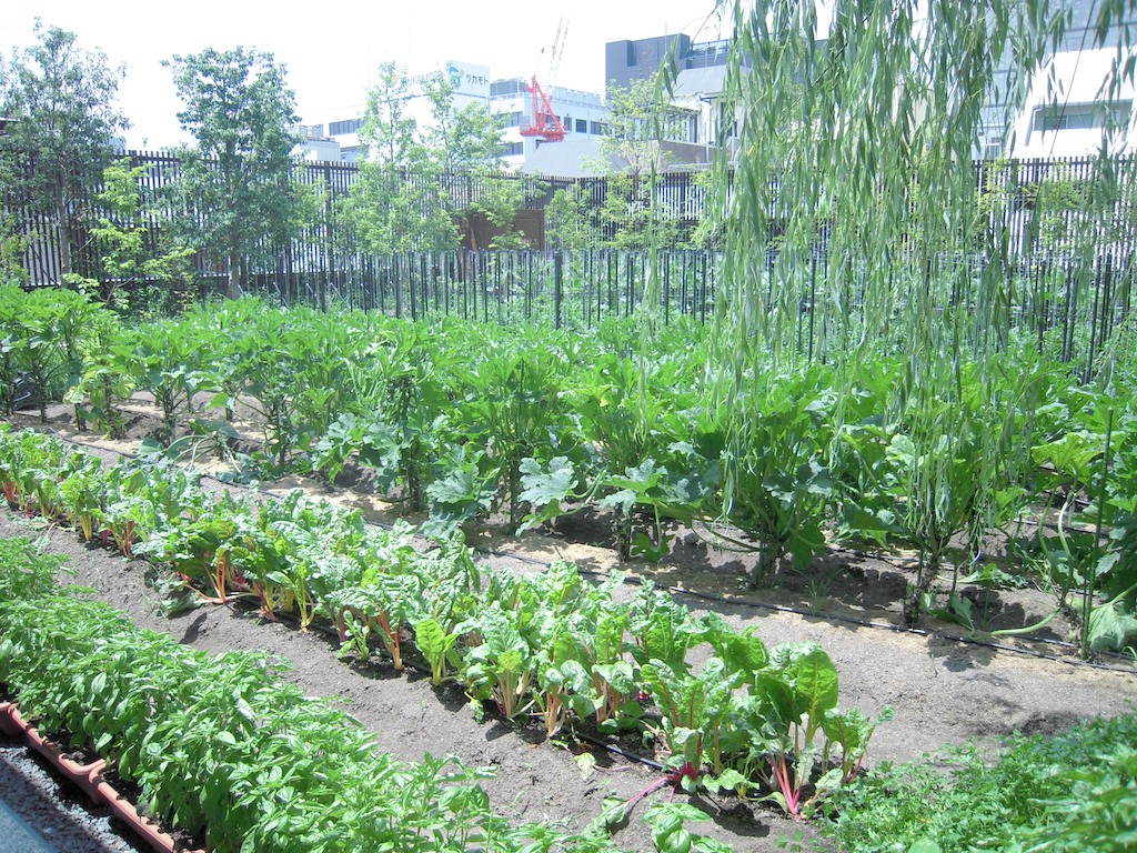 まず八百一本館屋上、「セイボリー」のお店の前、畑の作物がどれもよく育っているのを見て回りました。