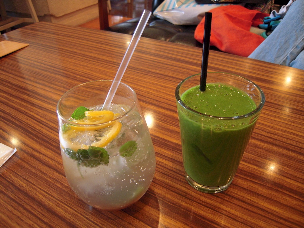 友人はグリーンスムージー。わたしはジンジャースパーク。