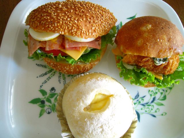 今日はバーガー2品と、わが家の定番おやつ「もちもち豆乳パン」。