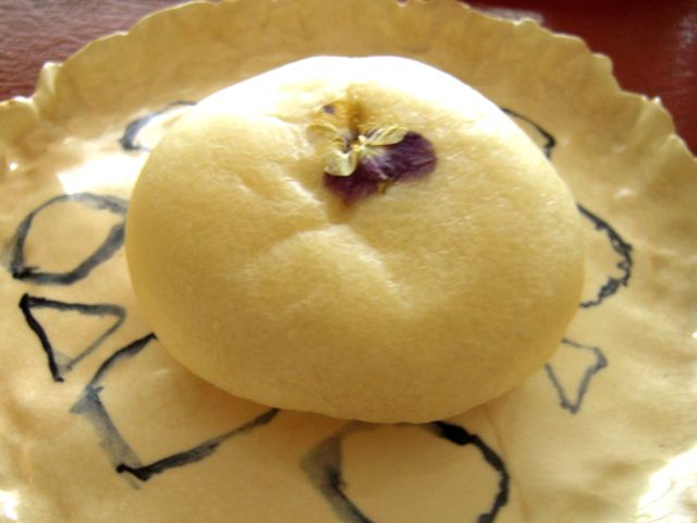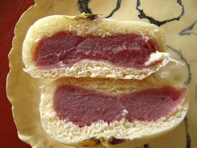 『藤壺』と名付けられた餡パン。シワが寄ってしまった。