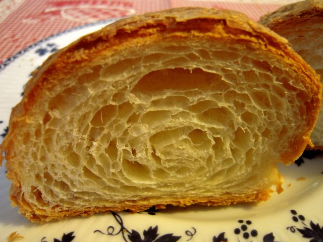 大きくて、パイのように層になって、生地がよく膨らんでいます。