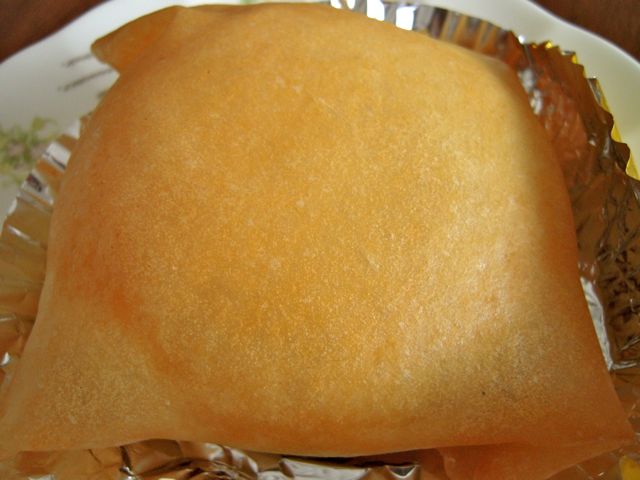 春巻きの皮で包んであります。香り高い山椒をちょっとふって食べました。