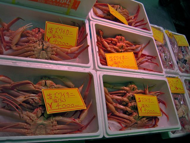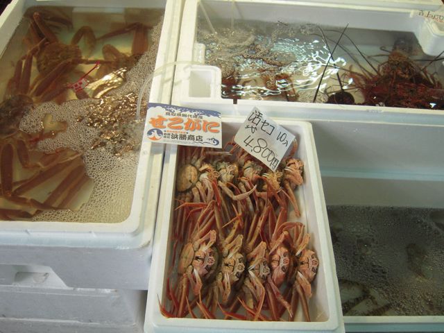 つい一週間ほどまえに漁が解禁になったので、松葉ガニがあちらにもこちらにも。