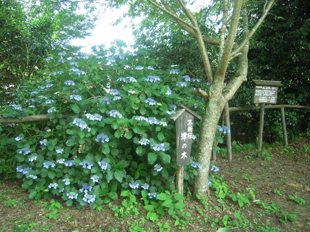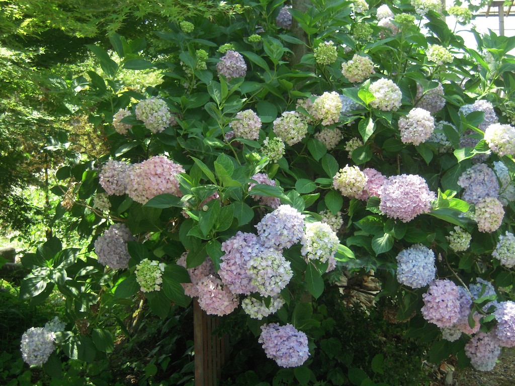 沿道には、いろいろな紫陽花が咲いていて、これから行く三千院で開催中のあじさい祭りへの期待も高まります。
