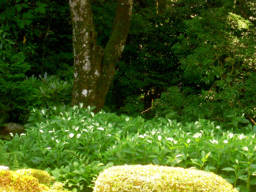庭の向こうの陰になっているところに半夏生という名の植物が群生していました。