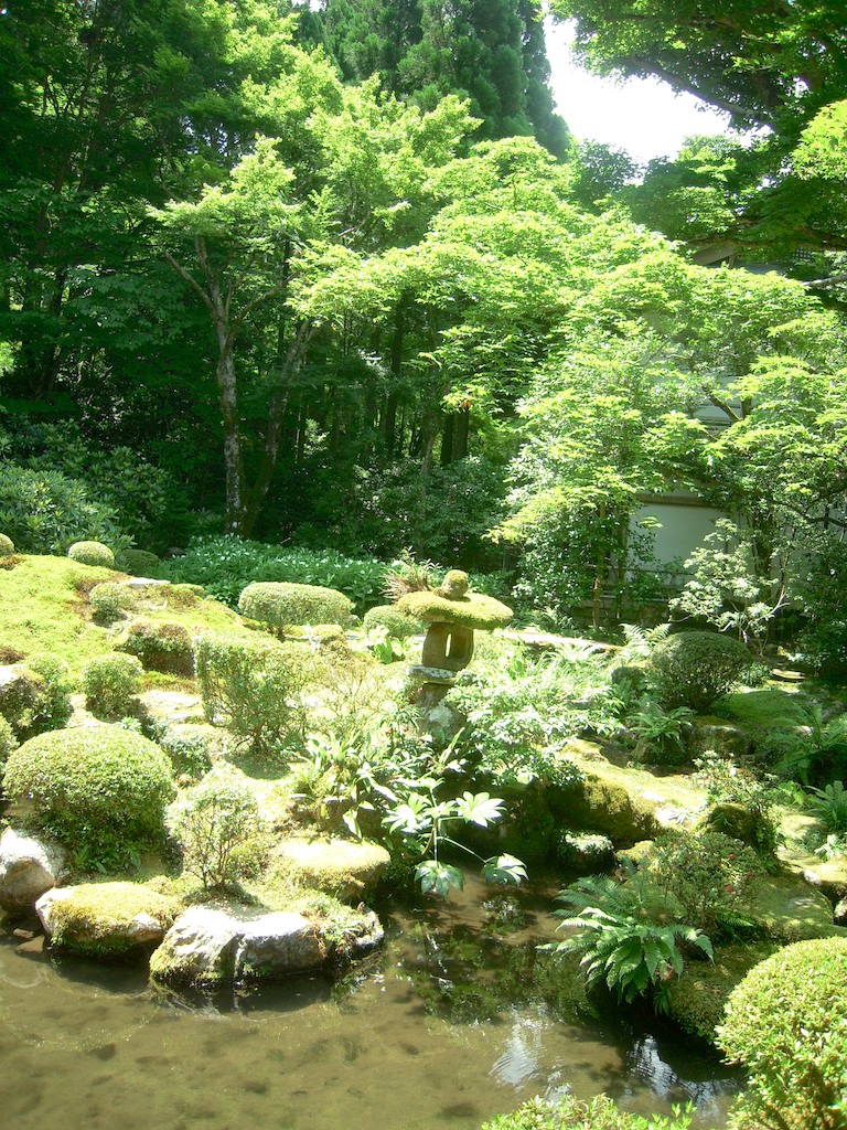三千院の庭は太陽に照らされて陰影の差が大きい。大原の里は盆地なのですが、この三千院は南へ向けての斜面になっているのですね。