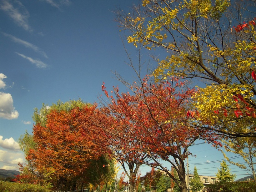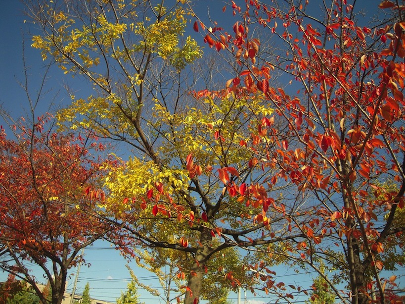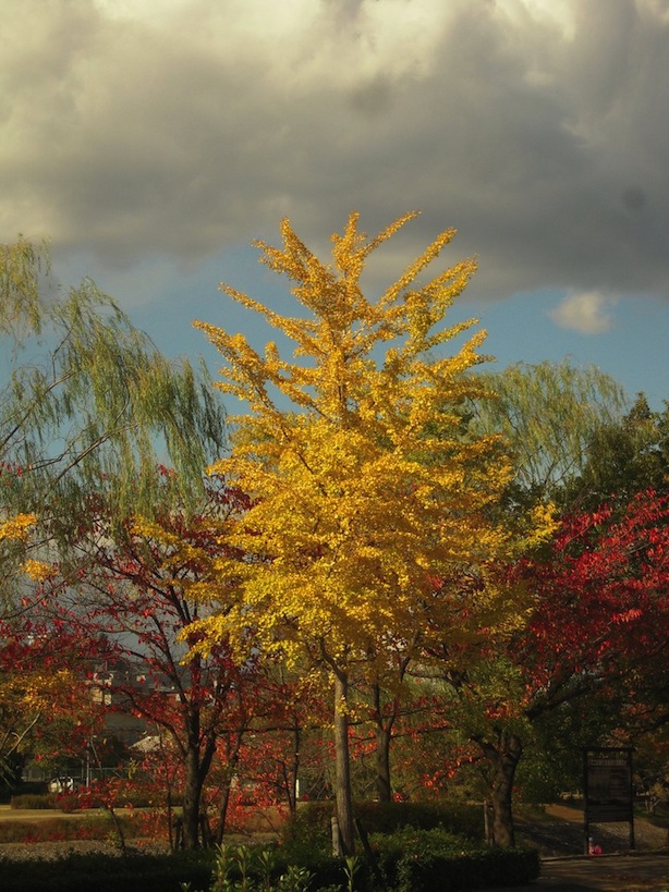 黄色と緑の銀杏のほかにも、赤に橙色に茶色に・・