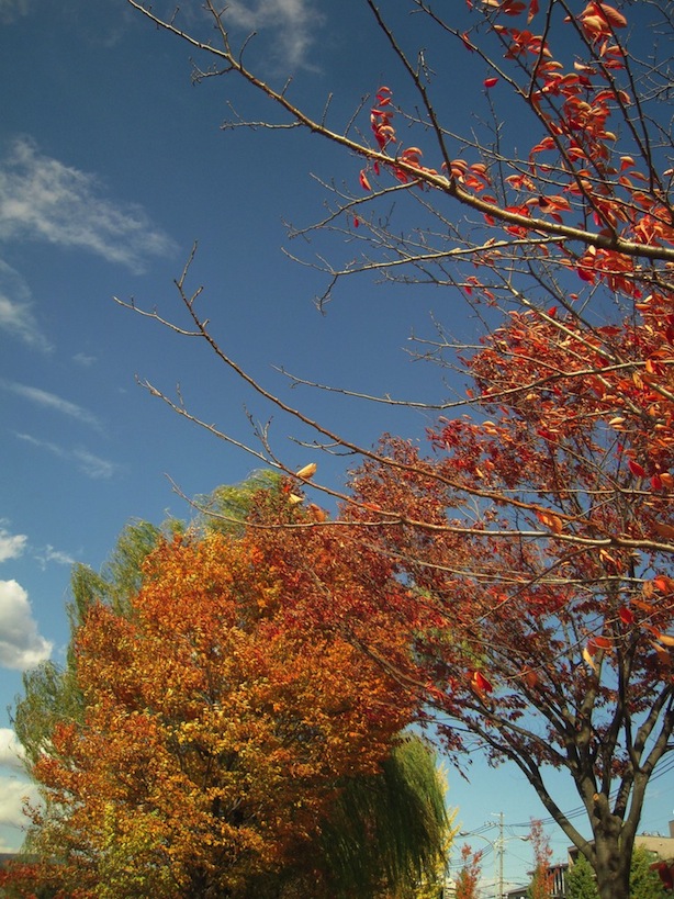 お天気はいいのに、というのか、お天気がいいから、というのか。このところ、めっきり朝晩冷え込んで、今日は日中も冷たくて強い風が吹き、樹々の色づきが加速してきました。