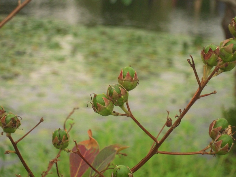 ちょっと雲行きが怪しくなってきましたが、風がやんだので池の表面が鏡のようです。