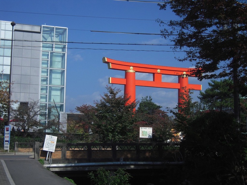 今日の空は晴れ晴れとして気持ちのいい日。平安神宮の鳥居がピカピカとして見えます。