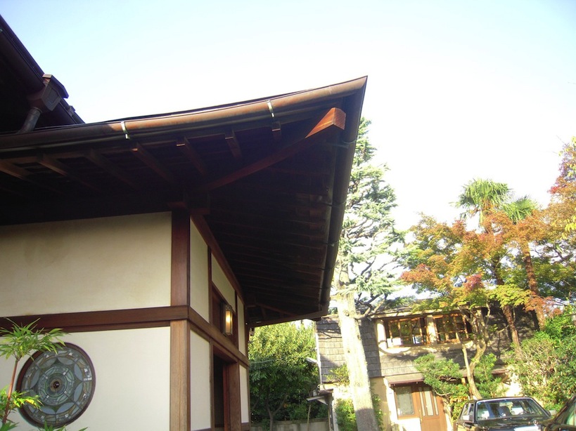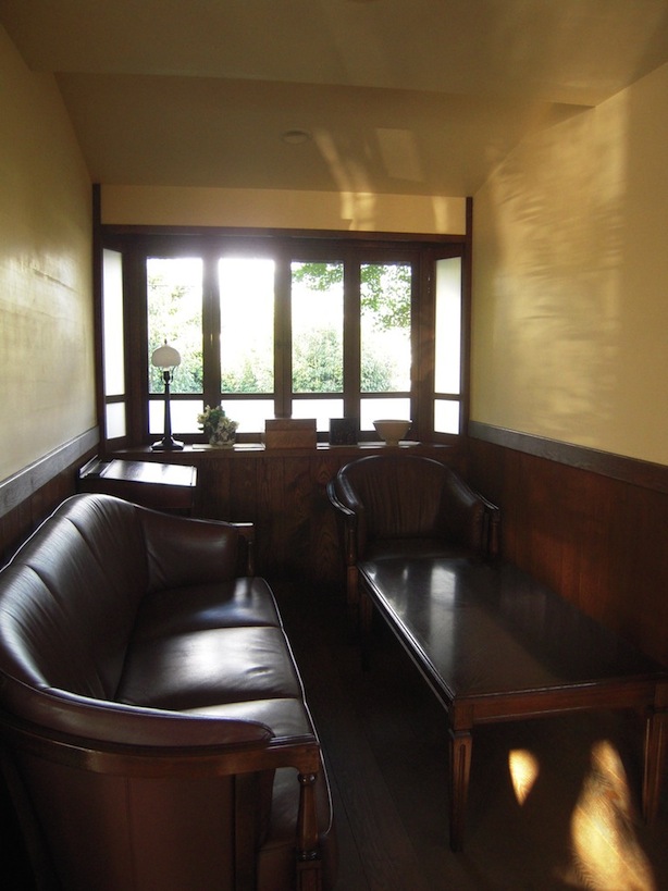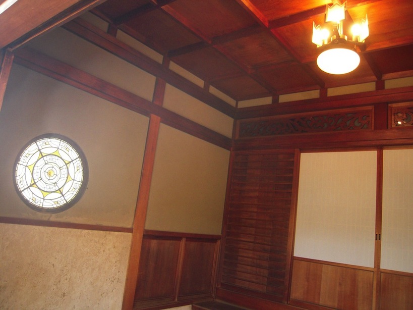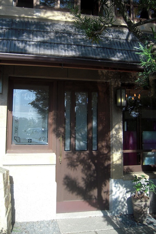 ここから見える旅館の玄関も素晴らしい。ステンドグラスがついているのも面白い。