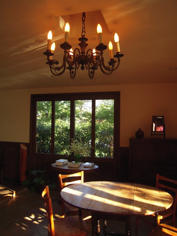 外は晴れて明るいけれど、中は落ち着いた明るさ。電灯の灯りが昼間なのに美しく見えます。
