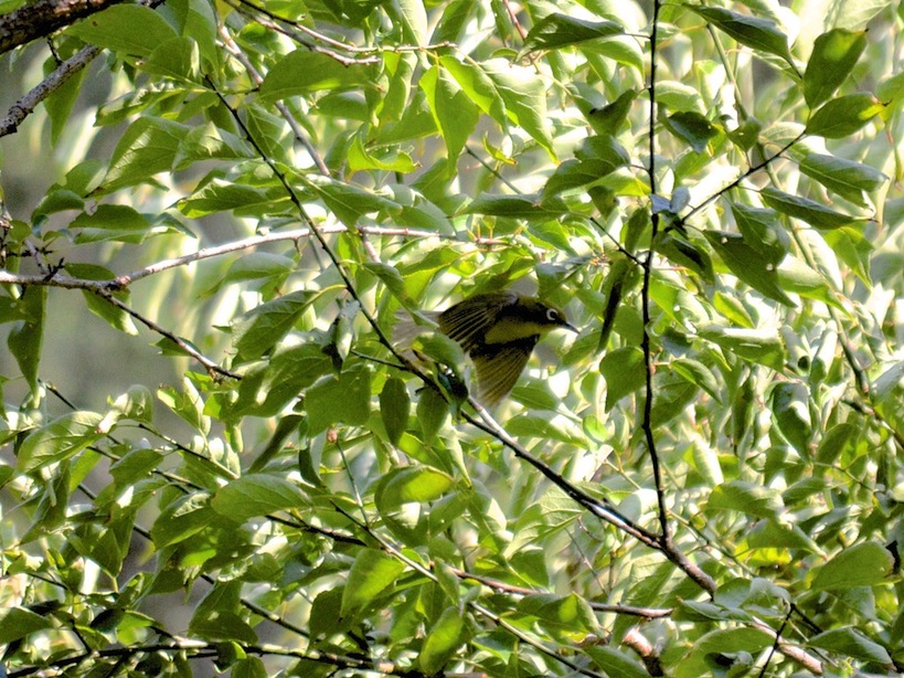 なにかの鳥が飛び立つ瞬間が撮れました。メジロでした。