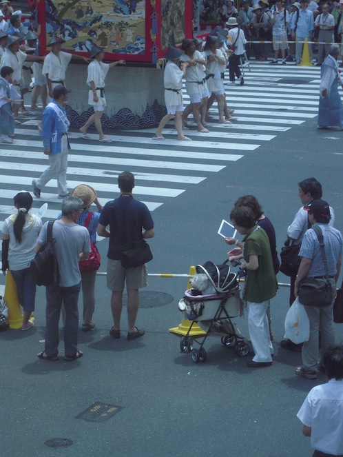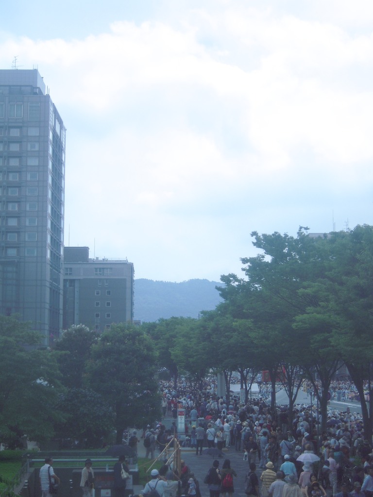 実際に目の前を通るのを見るのはひさしぶり。例年は暑さに怯んで、朝8時半ごろからのテレビ中継を見ていることが多いのです。