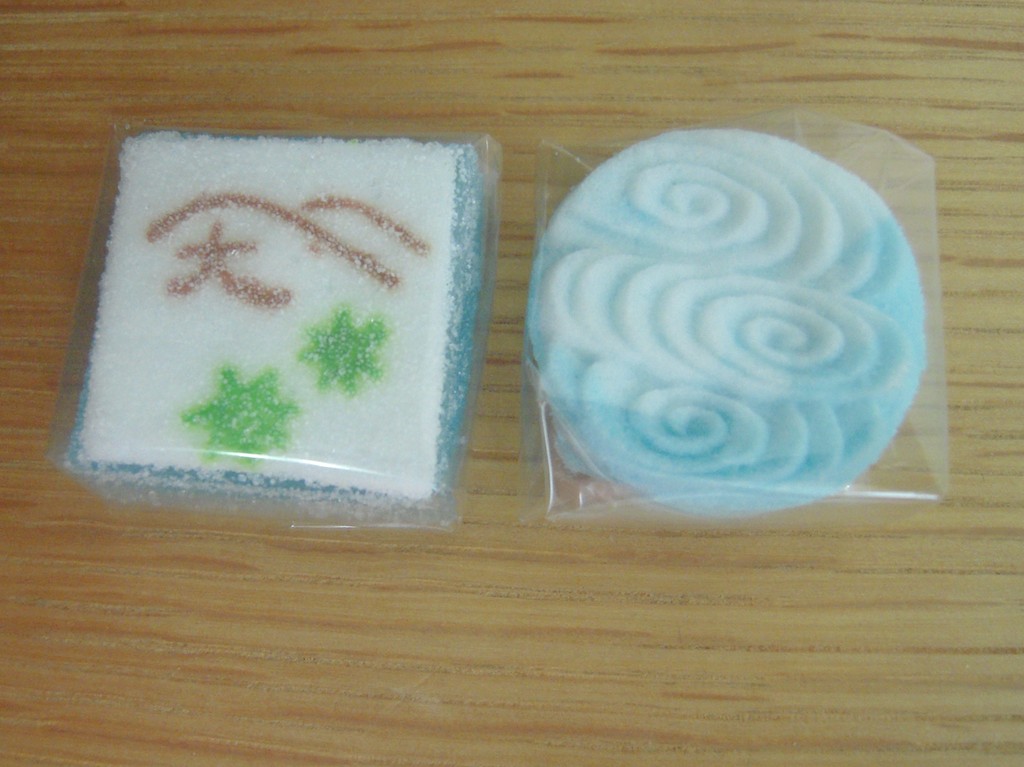 水の流れを模した干菓子、大文字の干菓子を選びました。ああ、もう来月は五山の送り火です。なんて先のことは考えないでおきましょう。気が急くのはいやですから。