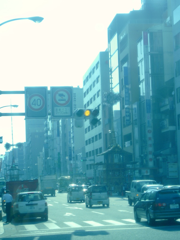 御池通のビルの2階、友人から涼しい室内で見物できる機会を貰いました。