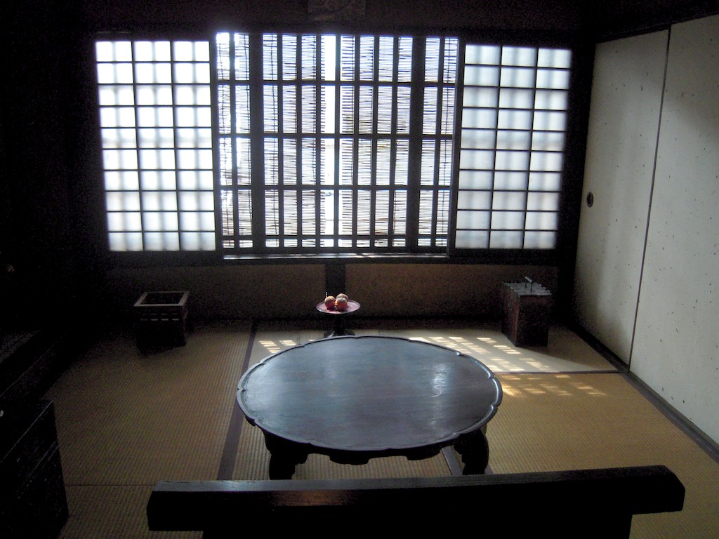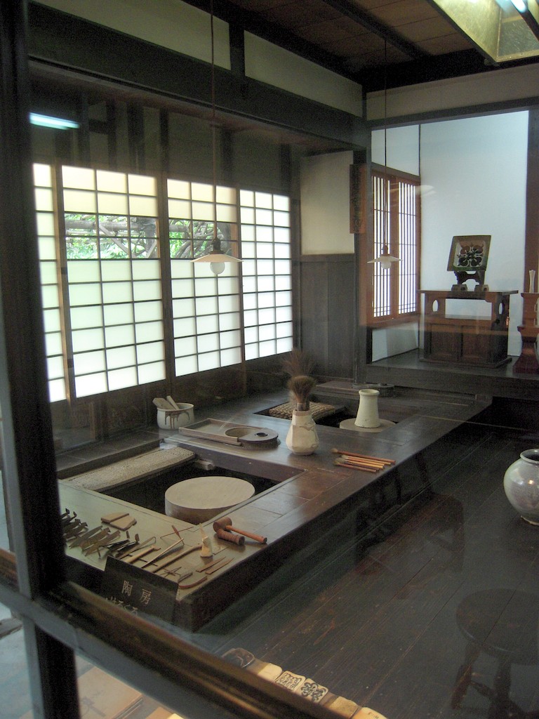 ここは作業場、アトリエですね。障子の窓の外には藤棚がありましたので、季節によっては開け放して作業されることもあったでしょう。