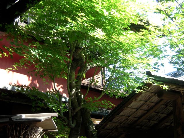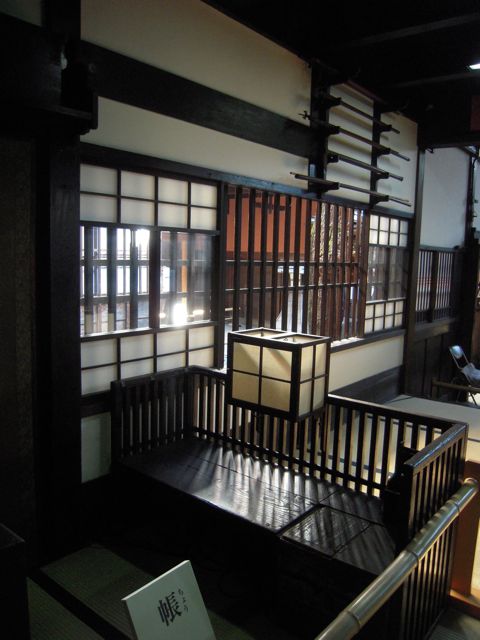 お座敷の一部の壁にも使われていますが、ベンガラの赤を使った壁は高貴な方を迎えるための色。京都でも昔は桂離宮や仙洞御所、一力亭、ここ角屋、あと2箇所どこだったかしら。の、6箇所にしかゆるされていなかったということです。