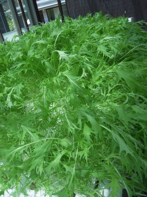 窓の一部は開けられて風が入ってきていました。太陽を充分感じるのに暑くなく心地良い空間になっていました。これなら野菜も大喜びです。