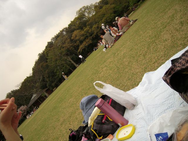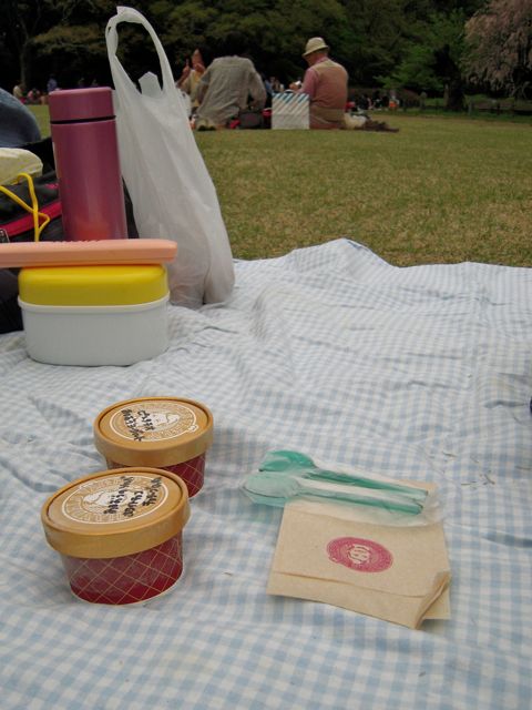 今回のわたしたちのランチは、芝生にピクニック用の布を広げていただきました。