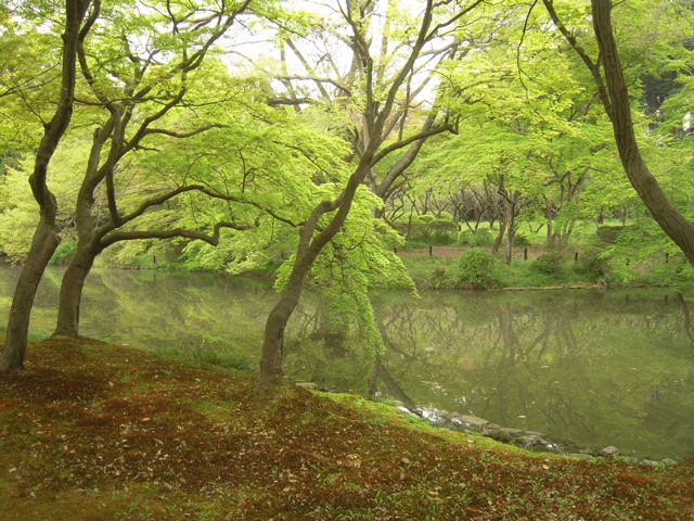 植物園の中に点在する池は、どこも新緑が映えて絵に描きたくなる美しさでした。