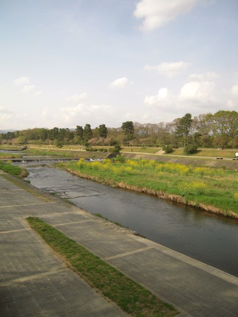 夕方になってとても晴れてきた空の下、鴨川を見ながら帰りました。