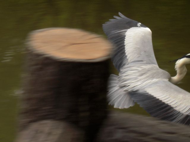 池の端にアオサギが佇んでいたので観察していたら急にこちらへ飛んできました。