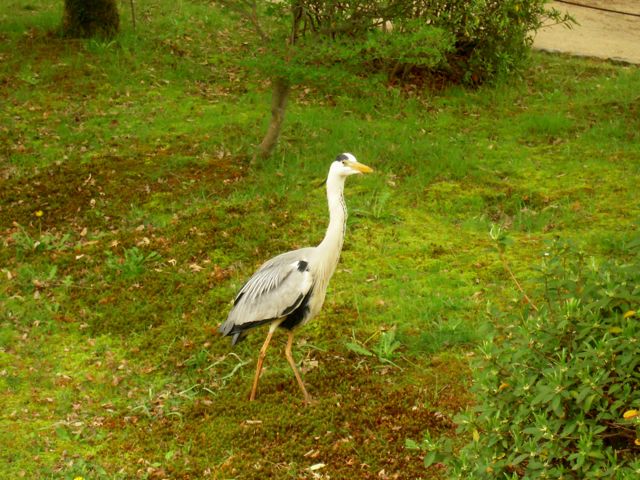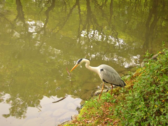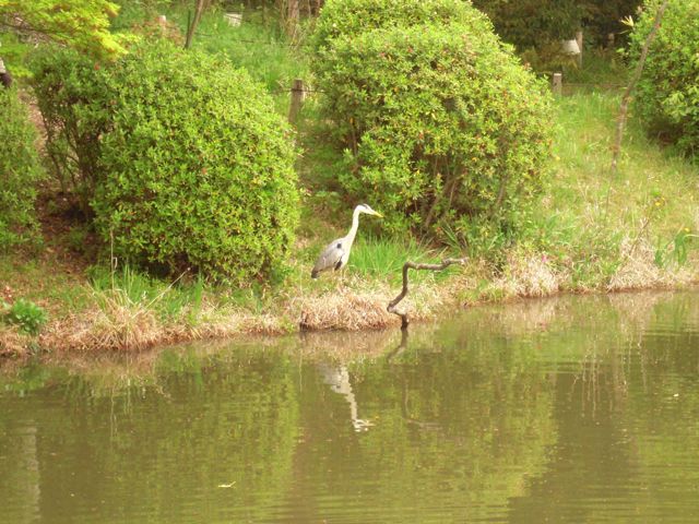 そんな姿を間近で見られていても平気なアオサギ。園内にはめったに危険がないことをよくわかっているのでしょう。