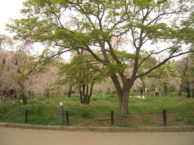 枝垂れ桜も、遠くから見たらまだまだ綺麗です。