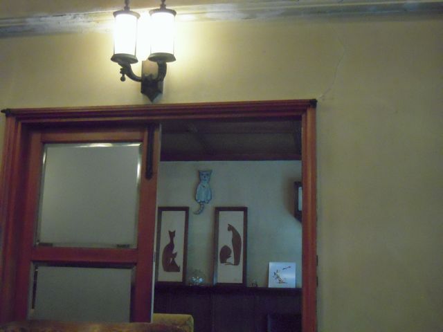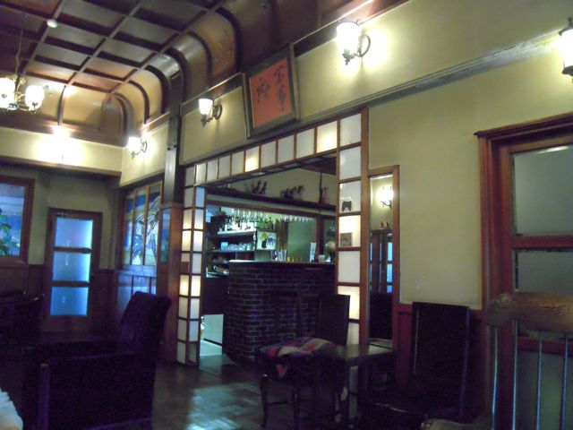 アールデコというよりは大正ロマンというほうが正しいでしょうか。抑えられた色調のステンドグラスや、真鍮のドアノブ、天井の彎曲、時代がかった照明。