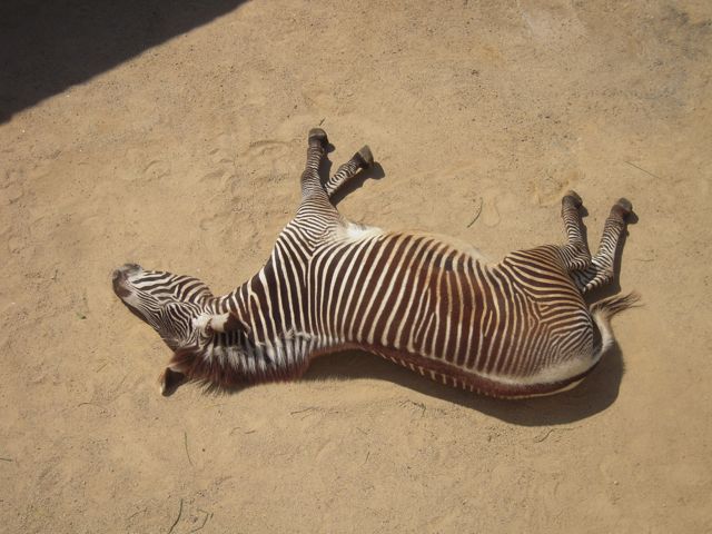 砂で背中をゴシゴシ、ゴロゴロ。シマウマくん。